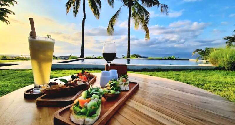 With a stunning 200° panoramic view over the lush valley, the sacred Tree of Life, and the majestic slopes of Mount Agung, Eden will charm you with its magical setting, refined ambiance, creative flavors, and attentive service.